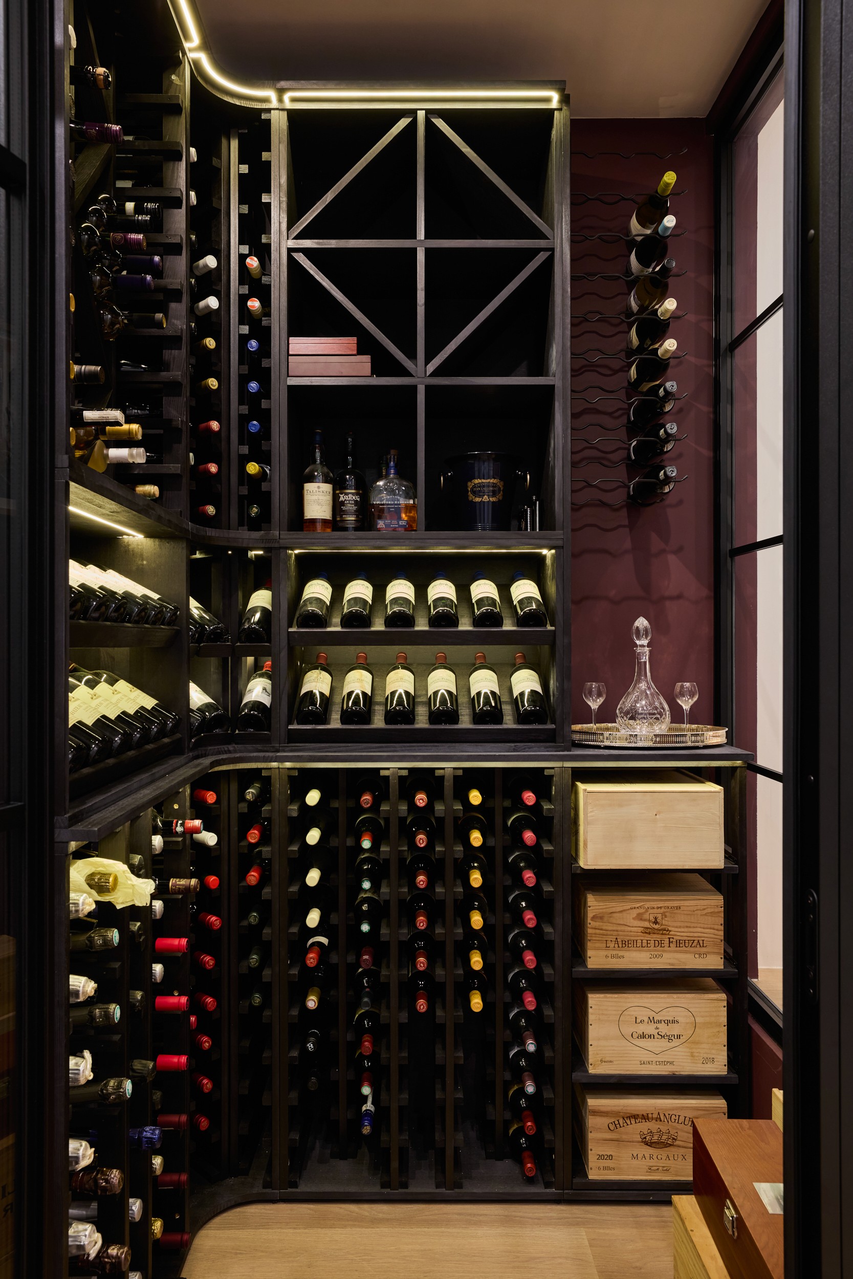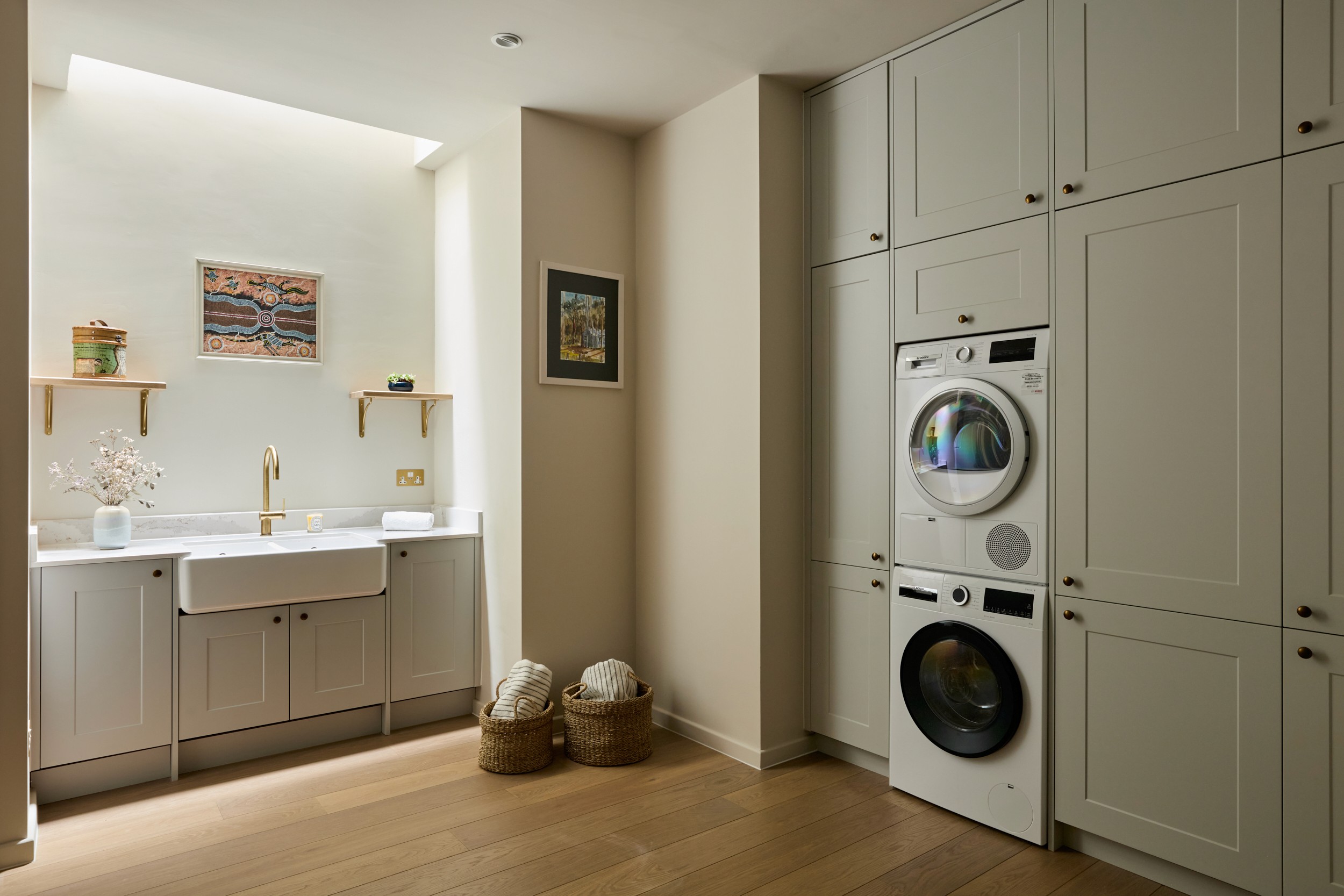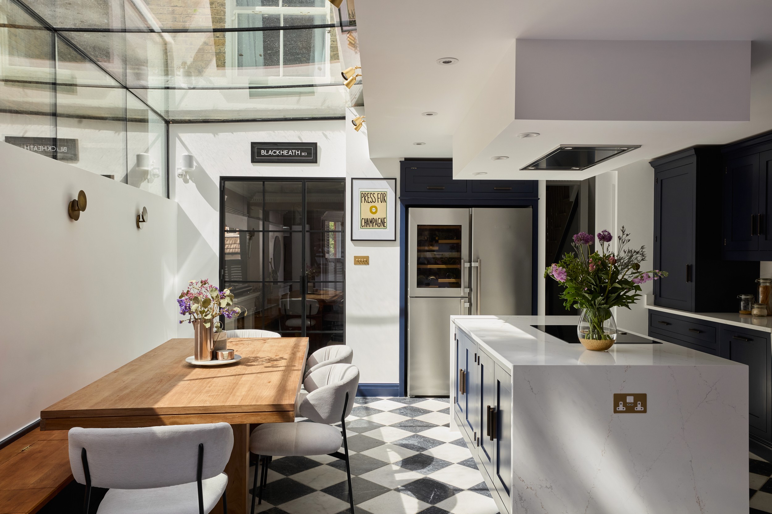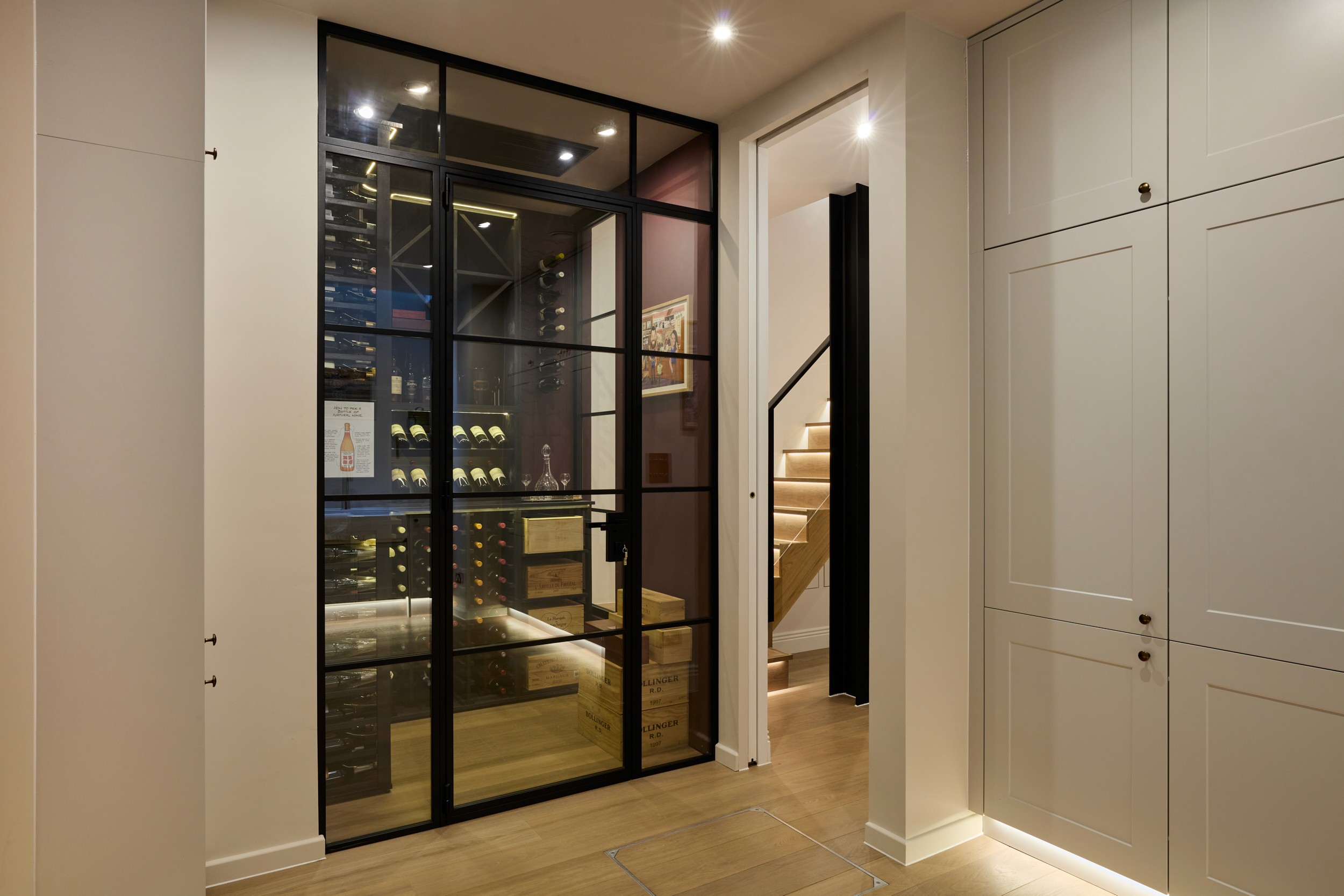 This ambitious South East London renovation transformed an underused basement into a beautifully detailed lower-ground living level. The scheme includes a bespoke wine store, fully equipped home gym, dedicated laundry room, new lightwells, and a luxurious bathroom. The ground-floor kitchen and interiors were also redesigned, creating a cohesive vertical flow between levels. The result is a highly functional extension of the home, designed for modern family living and entertaining.